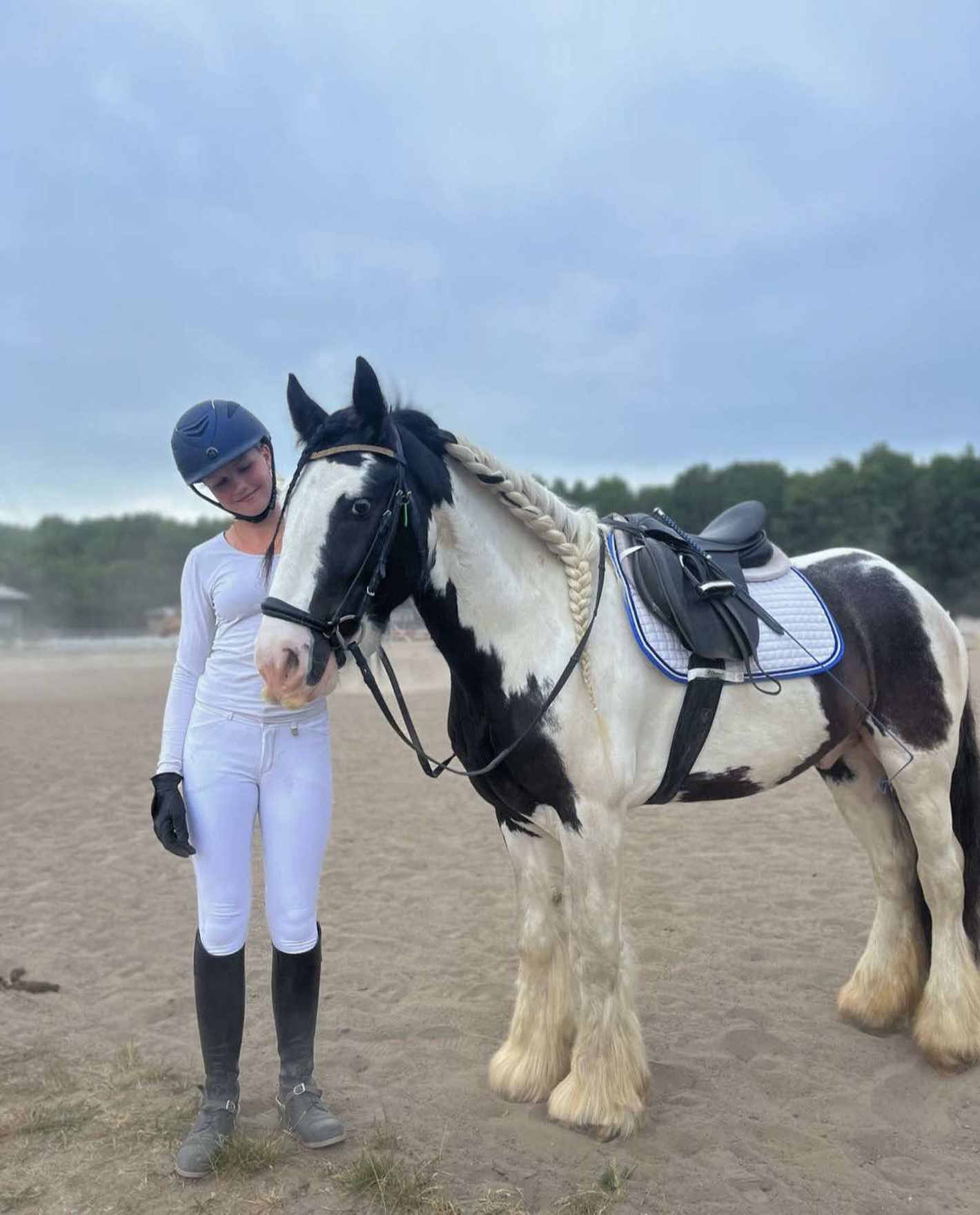 Beskrivelse: Lima er forholdsvis ny på rideskolen og en rigtig sød men stadig urutineret hest. Derfor rides hun primært af de lidt mere rutinerede ryttere, så hun kan få lidt hjælp når hun synes det hele er lidt svært. Lima er altid glad og prøver altid at løse den opgave der bliver stillet hende. Hun nyder en god tur i skoven og springer også rigtig fint. I stalden kan Lima godt være lidt ked af gjorden, så spænd den forsigtigt. Ellers er hun bare rigtig sød og en hest vi er rigtig glade for.